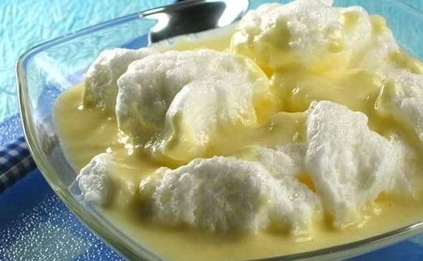 Sastojci: – litar mleka – 4 jajeta – 6 kašika šećera – 2 kesice vanilin šećera – 2 pune kašike brašna Priprema: Odvojiti žumanca od belanaca. Sipati mleko u šerpu sa debelim dnom i uključiti ringlu na srednju jačinu. Dok se mleko greje, veoma čvrsto umutiti belanca.