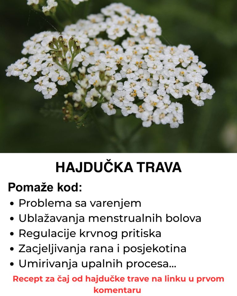 Hajdučka trava (Achillea millefolium), poznata i kao stolisnik, koristi se u narodnoj medicini već vijekovima. Ime je dobila po grčkom junaku Ahilu, za kojeg se vjeruje da je koristio ovu biljku za liječenje rana svojih ratnika. Danas znamo da hajdučka trava sadrži obilje korisnih jedinjenja: eterična ulja, flavonoide, tanine, gorke materije i salicilne derivate, koji zajedno daju ovoj biljci širok spektar ljekovitih svojstava.