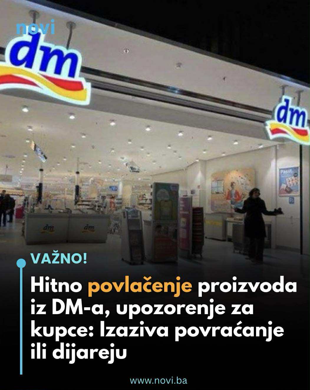Sve kupce koji su već kupili proizvod s navedenim rokom trajanja dm poziva da isti prestanu koristiti te da, otvoren ili neotvoren, vrate u njima najbližu dm trgovinu, gdje će dobiti povrat novca i bez predočenja računa, piše Radio Sarajevo.