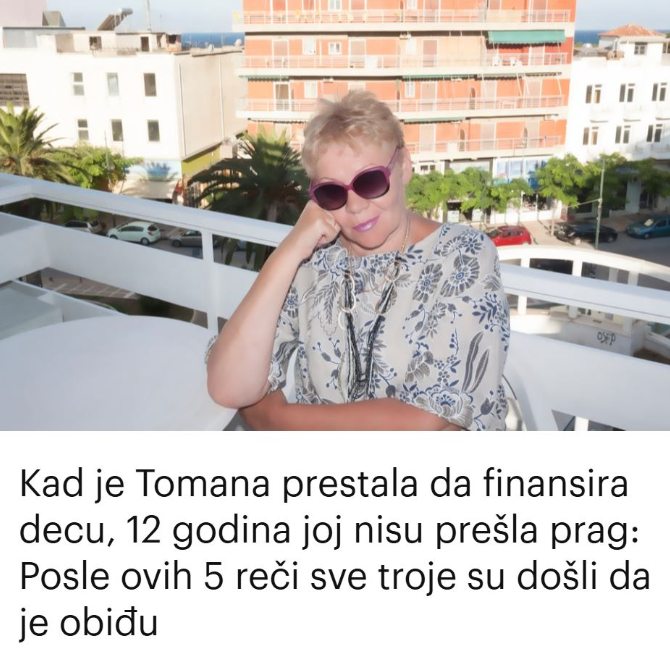 „Moj stariji sin, koji je uvek bio vezan za porodicu, nakon što se oženio, potpuno se udaljio. Par godina kasnije, samo mi je poslao poruku: ‘Briši moj broj’. Bez ikakvog objašnjenja. Bila sam slomljena, ali sam sebi rekla – ako je to ono što njega usrećuje, poštovaću to“, iskreno priča Tomana.