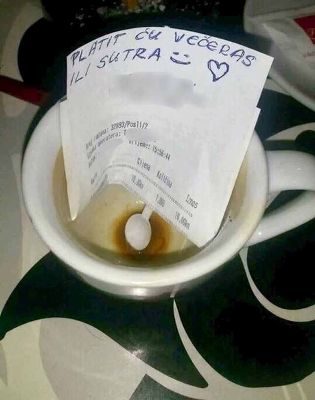 Je li vam se ikad dogodilo da ste naručili nešto za jesti ili piti pa tek onda shvatili da nemate dovoljno novca? Ova osoba je to možda i svjesno učinila. Evo što je ostavila konobarima na stolu.