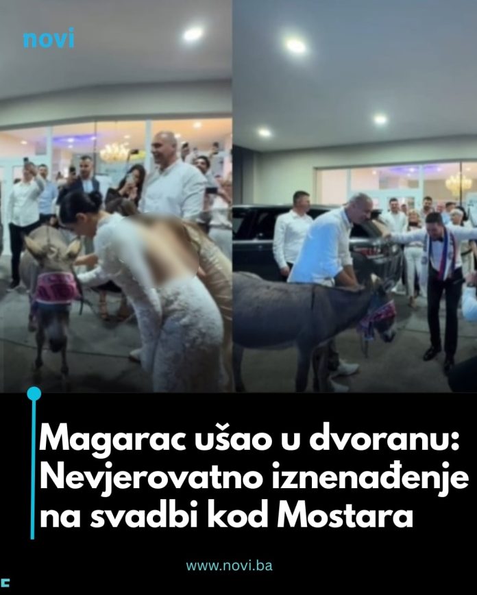 Svadbena dvorana Afrodita kod Mostara sinoć je bila poprište neuobičajenog iznenađenja, gost iznenađenja na svadbi bio je magarac.