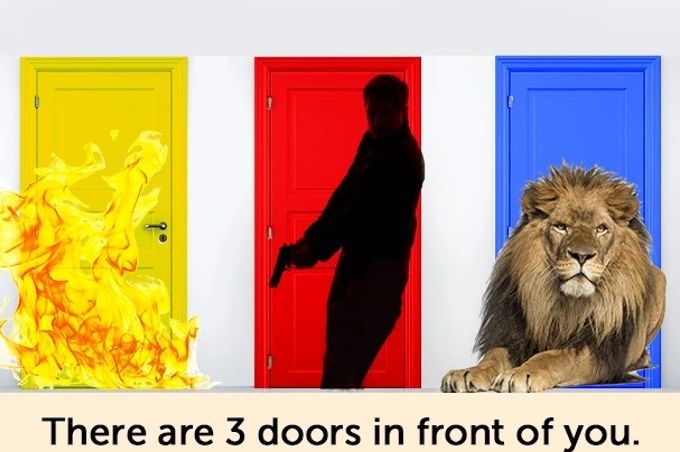 Iza prvih vrata je vatra u plamenu, iza vrata broj 2 je razbojnik koji u ruci drži pištolj i iza vrata broj 3 je lav koji nije ništa jeo 3 godine.