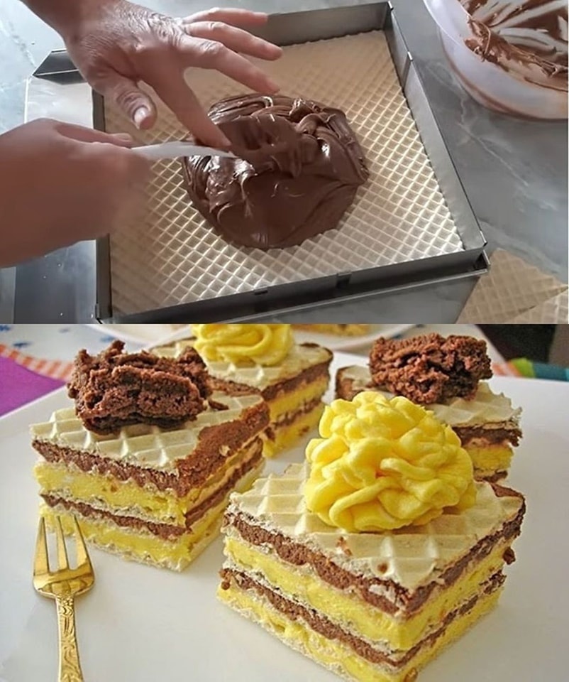 Nastavite ovaj postupak naizmenično, ređajući oblande i filove dok ne potrošite sve sastojke, a poslednju oblandu stavite na vrh i lagano pritisnite kako bi se filovi sjedinili.
