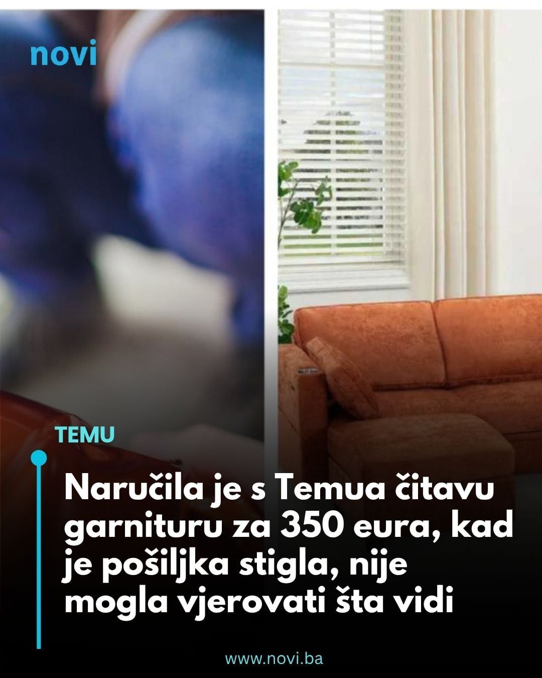 „Oduzmite mi internet! Nećete vjerovati što sam naručila s Temua. Ovo nije reklama – samo sam pomislila, ajde da vidimo što će ispasti. Ljudi, naručila sam kauč. Cijeli kauč!“