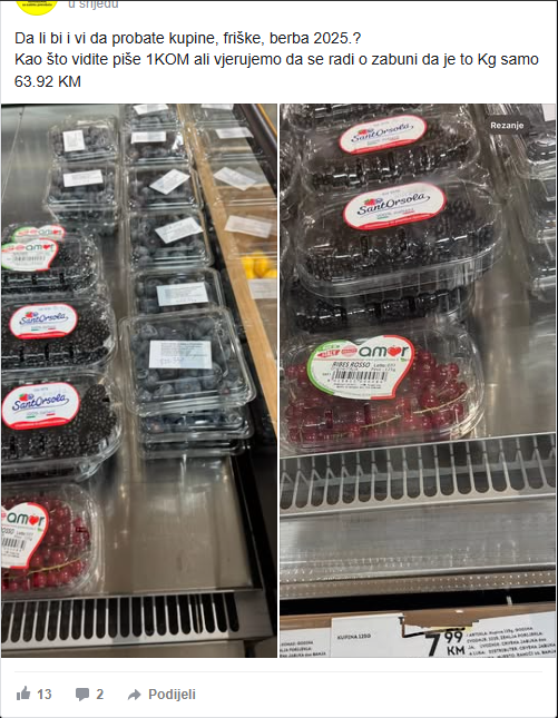 Fotografiju kupina koje se prodaju po ovoj cijeni na svom Fejsbuk profilu objavili su i iz prijedorskog Udruženja za zaštitu potrošača “Don”, uz komentar “da li biste i vi da probate kupine, friške, berba 2025?”.