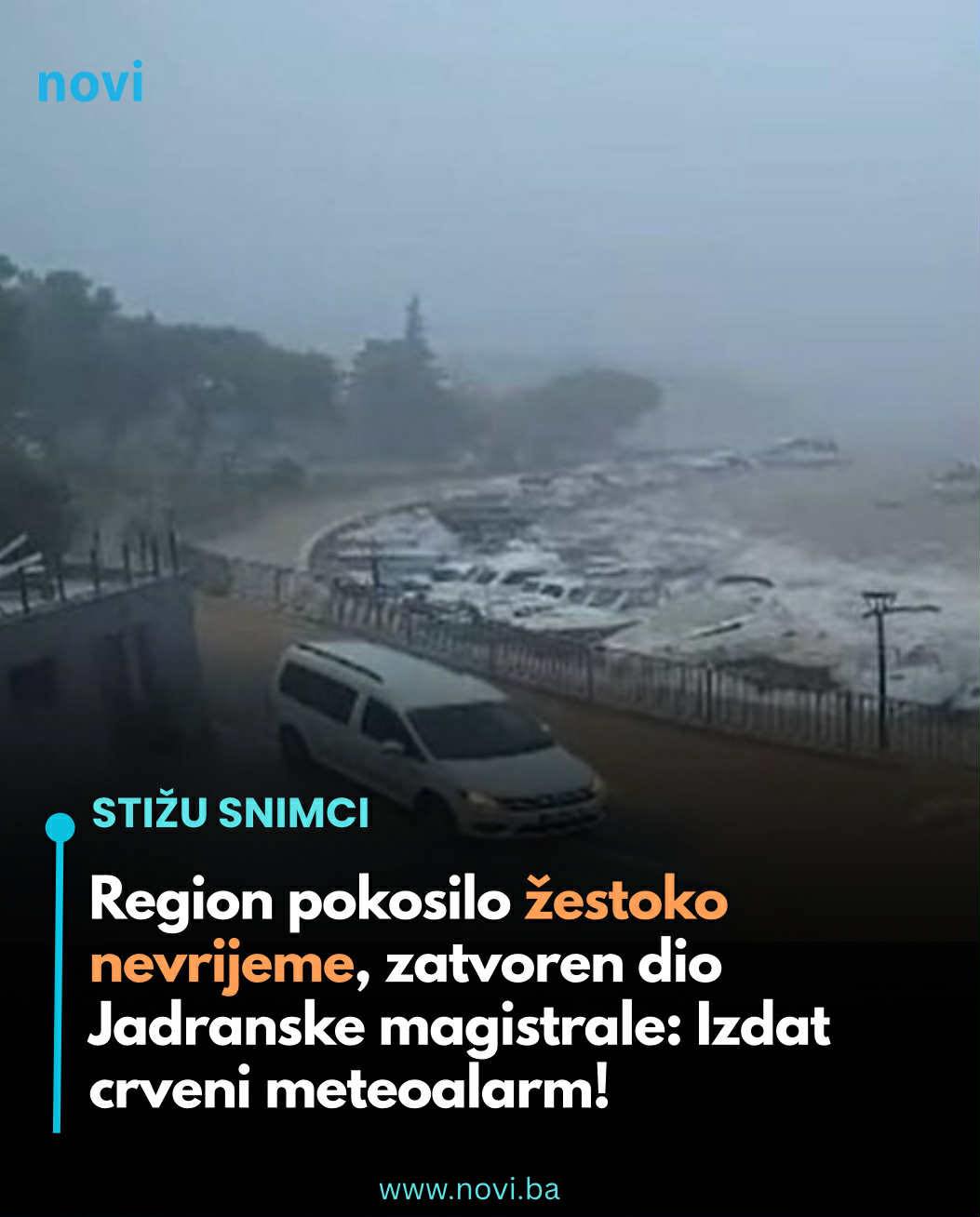 Na Jadranu puše umjereno do jako jugo, a u Splitu je dosegnut vrlo jaki prosjek od 13,2 m/s, te jugo bilježi olujne udare. Zbog vjetra, u prekidu je katamaranska linija Split-Bol-Jelsa.