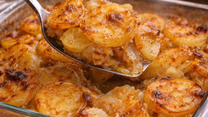 Servirajte toplo, direktno iz vatrostalne posude. Krompir je mekan i sočan iznutra, a spolja blago hrskav, dok luk daje posebnu slatkastu aromu – savršen posni ručak koji se pravi od osnovnih sastojaka, a osvaja sve!