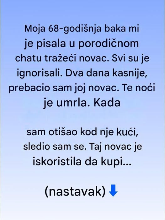 Dva dana prije nego što je preminula, moja 68-godišnja baka poslala je poruku u porodičnu grupu koju niko od nas nije shvatio ozbiljno.
