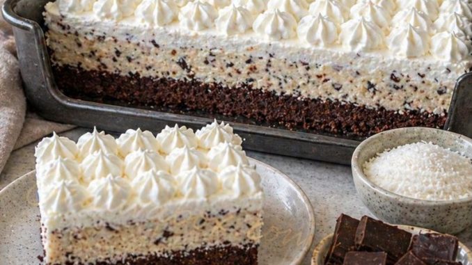 Po želji možete posuti sa malo kokosa ili rendane posne čokolade. Torta je izuzetno kremasta, lagana i osvežavajuća – idealna kada želite brz desert bez pečenja koji uspeva svaki put.