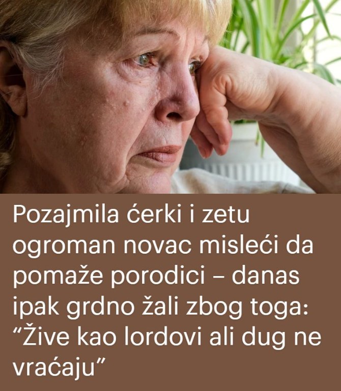 “Pre više od dve godine ćerka i zet našli su se u kriznoj situaciji. Nije bilo vremena za mnogo pitanja, trebalo je odmah reagovati. Podigla sam sa štednje 2.000 evra i pozajmila im u gotovini, uz dogovor da će mi vratiti najkasnije za godinu dana… Ali do sada o tom novcu nisu rekli ni reč. Kao da ne postoji. Nema ni pomena, ni nelagodnosti, ništa.