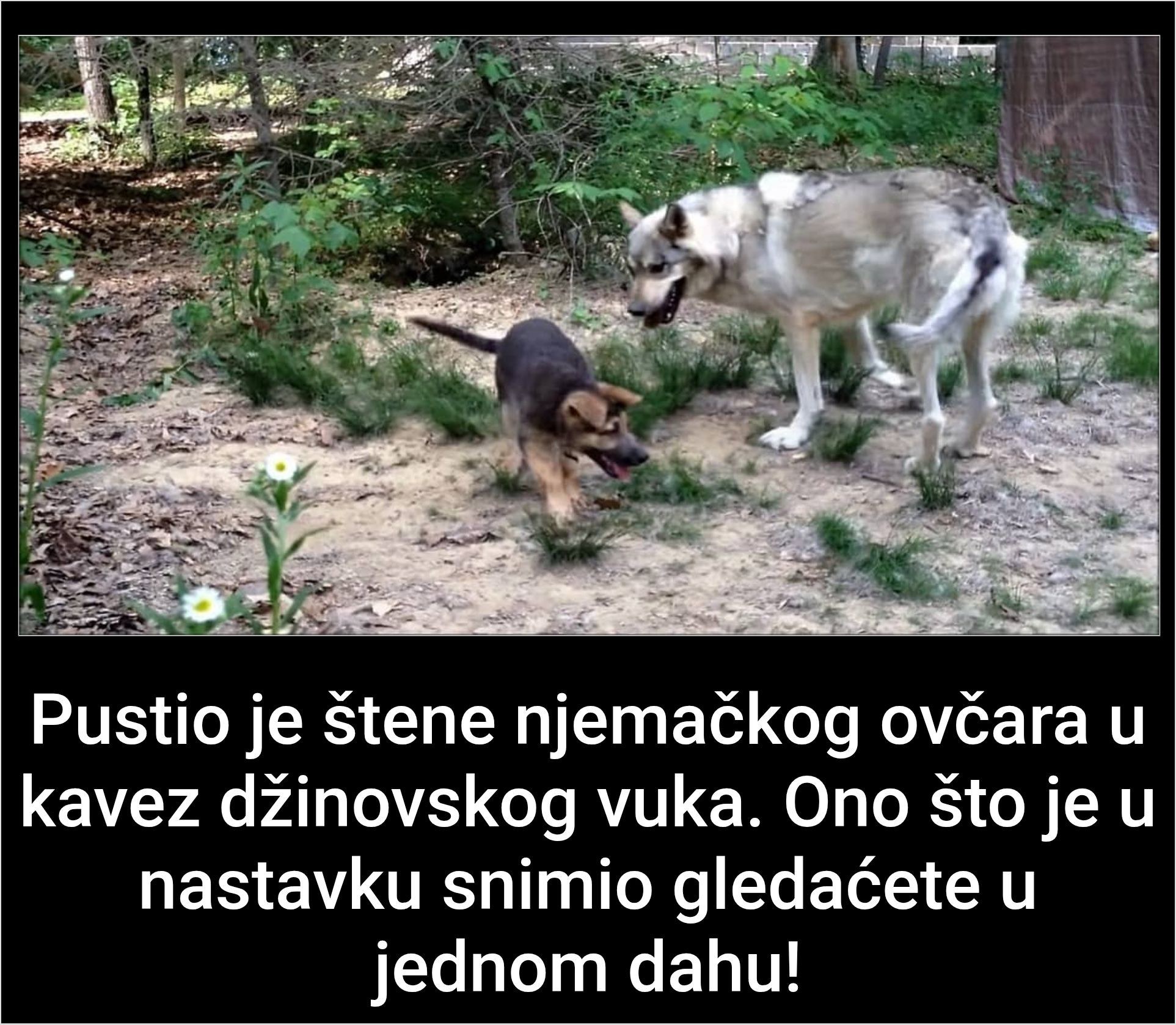 Pustio je štene njemačkog ovčara u kavez džinovskog vuka. 0no što je u nastavku snimio gledaćete u jednom dahu!