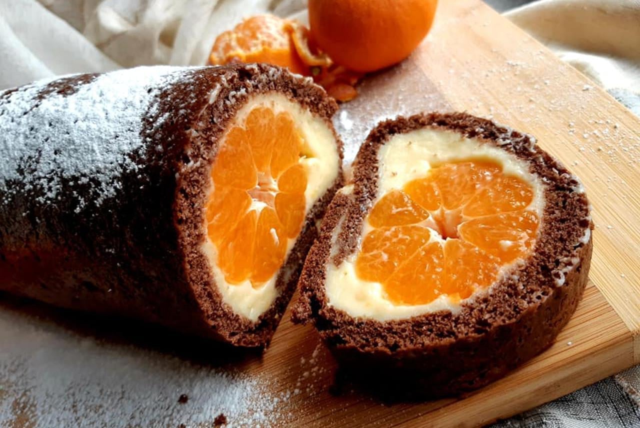 Biskvit pažljivo odmotati,filovati i uz rub poslagati očišćemne mandarine, čvrsto zarolati , ukrasiti po želji i ostaviti da se dobro ohladi.