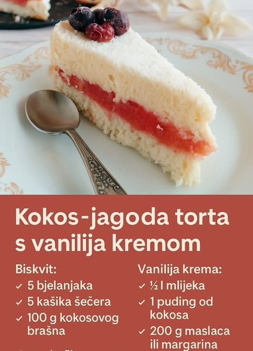 Kad se ohladi, nanesi vanilija kremu i pospi kokosom.