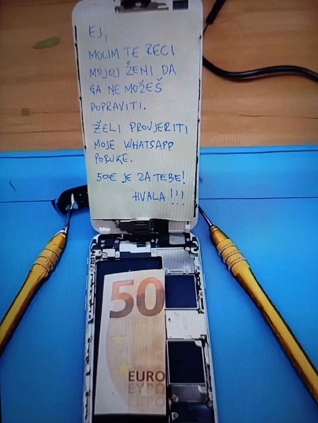 Serviser je 0tvorio mobitel pa u njemu pronašao poruku s bizarnom molbom, fotka je teški hit Novosti 5 Marta, 20265 Marta, 2026amila Serviser mobitela morao je fotkati i svima pokazati poruku koju je uočio kad je otvorio mobitel jednog klijenta. Situacije je u najmanju ruku bizarna, ali i prilično smiješna…😂 …