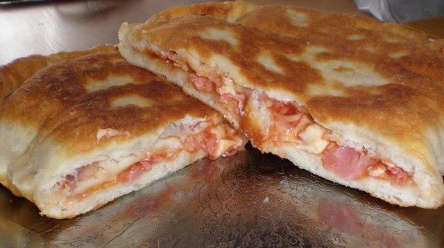 Na jednu polovinu picoline narendati salamu i poredati sudžuk, šampinjone, zdenku i na kraju naribati tvrdi sir.
