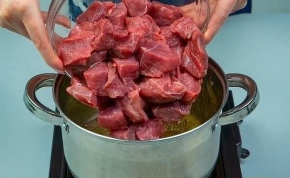 Za okupljanje od osam osoba, recept zahtijeva 600 grama goveđeg buta, uz dva luka i tri češnja češnjaka.
