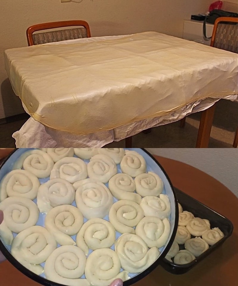 Tijekom ovog procesa, možda će biti potrebno povremeno posipati malu količinu brašna ispod tijesta, sve dok se ne postigne neljepljiva konzistencija.