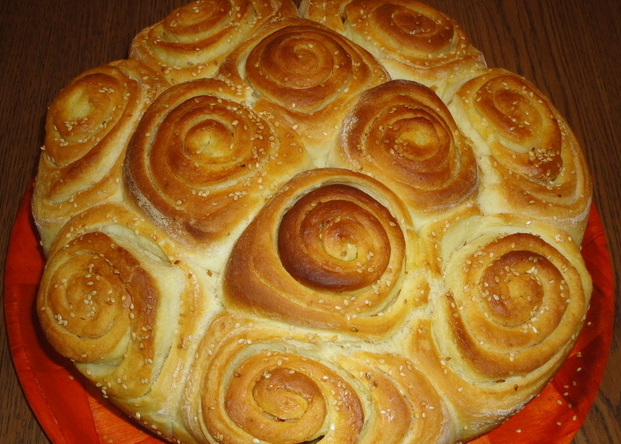 Na vrh svakog rolata staviti malo margarina i posuti susamom. Peći u zagrejanoj rerni na 200 C dok ne porumeni.