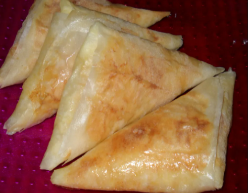 Na jedan kraj u uglu dodajte sir, preklopite malo(kao uši na teci kad se naprave) tako zavrčući i preklapajući pravite trokut. Svaku koru radite ovako dok ne potrošite sir i kore.Ako ostane sira stavite odozgo po trokutovima.Oni se peku 10-15-min. na 200stepeni(ja ih pečem i na šporetu na drva )