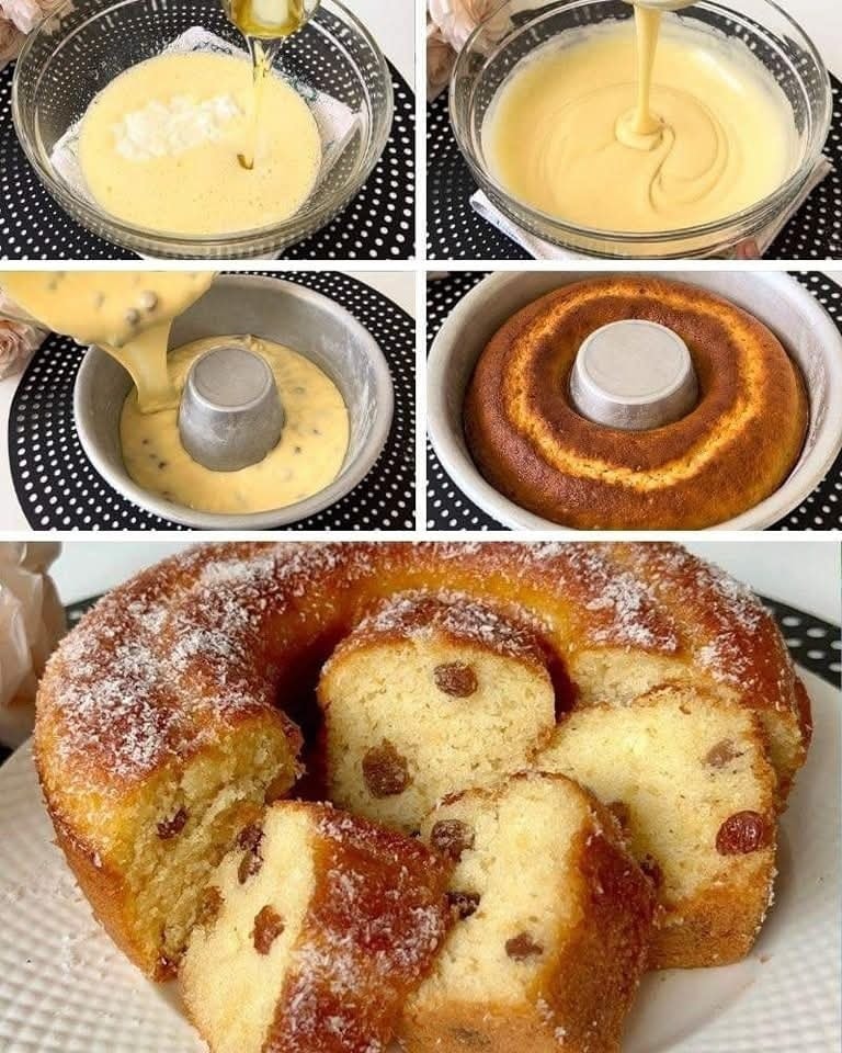 U smjesu umiješajte 50 g grožđica. Nastavite s pečenjem kolača.
