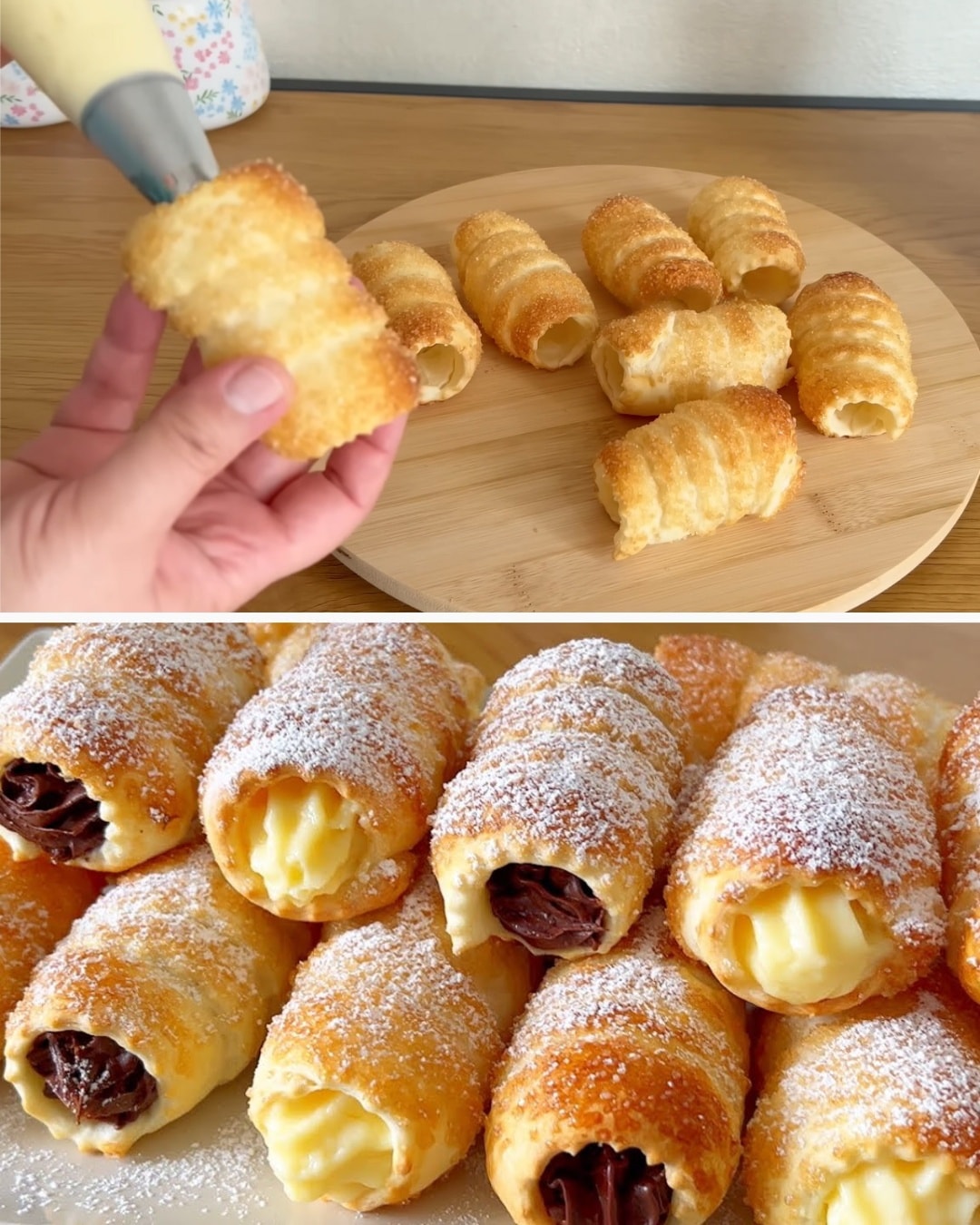 Prepustite se izvrsnom užitku ovih slatkih lisnatih tijesta punjenih raskošnom kremom od lješnjaka. Ova sofisticirana poslastica idealna je za svaki događaj, a nudi skladan spoj lisnatog lisnatog tijesta, baršunaste kreme i dekadentnog okusa lješnjaka.