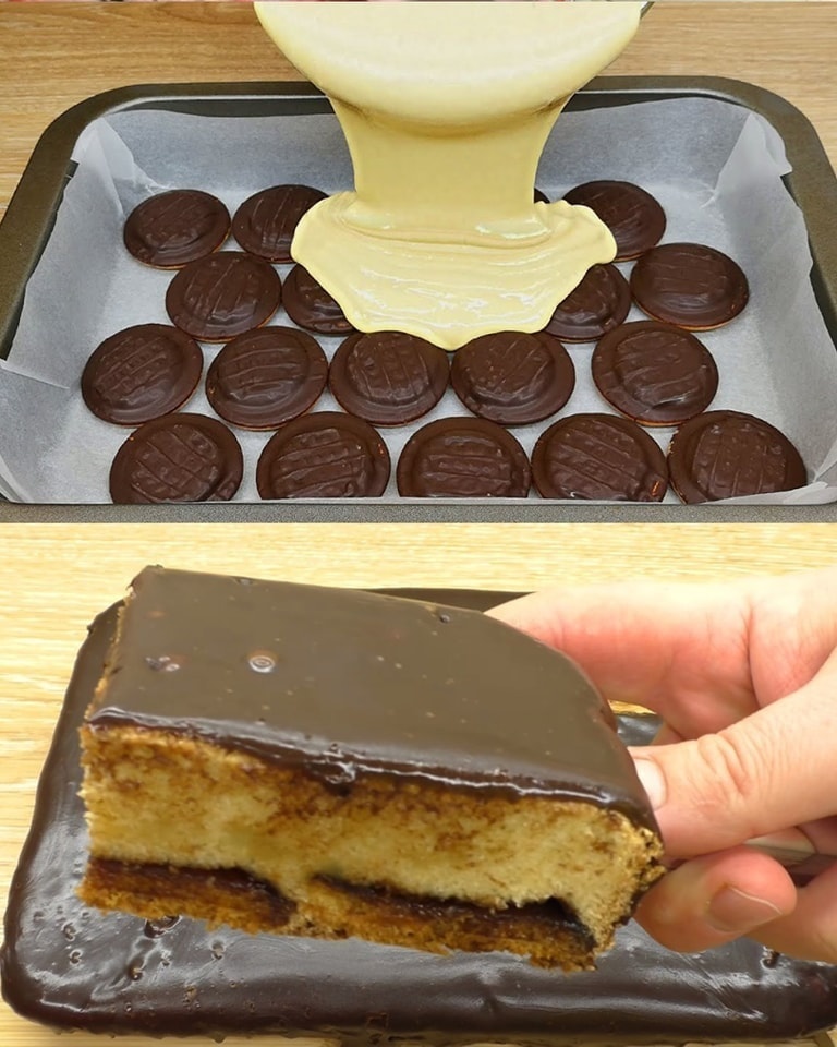 Dodajte tijesto: Prelijte tijesto preko jaffa kolača, ravnomjerno rasporedite da ih potpuno prekrije.