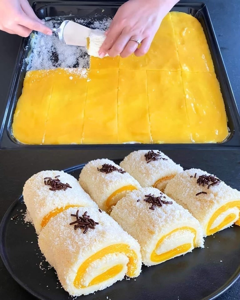 Da biste dodali divan i sladak dodir, velikodušno pospite čokoladom po vrhu neposredno prije posluživanja. U ovom slasnom slojevitom desertu možete uživati kao u osvježavajućoj poslastici za sunčanog dana ili kao sofisticiranom završetku obroka. Baršunasta baza od kokosa, prožeta živahnim notama naranče, osigurava da će ovaj desert ugoditi publici na svakom okupljanju ili posebnom događaju.