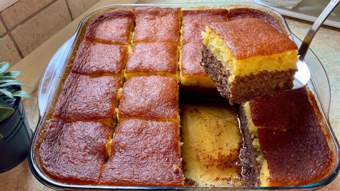 Izvadite kolač iz rerne i ostavite sa strane. Vrući šerbet prelijte preko vrućeg kolača!