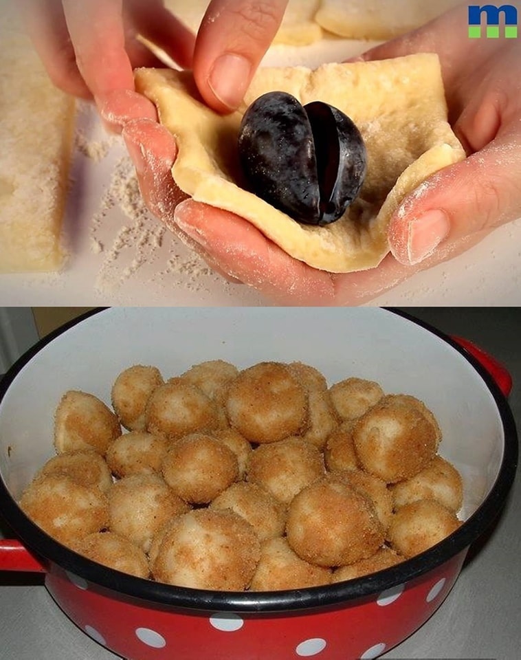 Nakon toga izvažite pire i na svakih 0,5 kg dodajte žlicu ulja, 1 jaje i 20 dkg oštrog brašna. Ovo služi kao osnovna mjera za recept. Nastavite mijesiti tijesto i oblikovati okruglice, pazeći da u svakoj bude po jedna šljiva. Okruglice kuhajte u vodi otprilike 15 minuta.