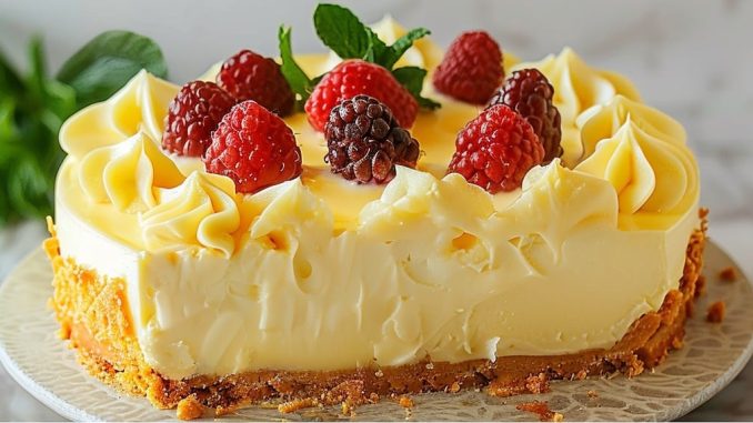 Prije serviranja, ukrasite cheesecake svježim komadićima ananasa.