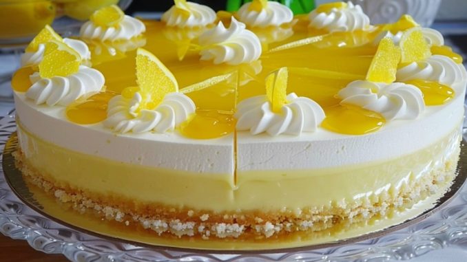 * Za dodatni sloj efekta, napravi „želatin ogledalo“ na vrhu torte koristeći još jedno pakovanje limun želea.