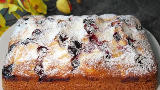 Ovaj divan kolač s višnjama i jogurtom nudi fantastičan užitak, spajajući slatkoću suhih i svježih trešanja s nježnim, vlažnim mrvicama.