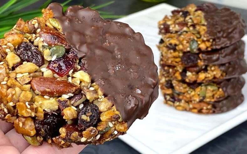 Poređajte oblikovane kolačiće na pripremljen pleh, ostavljajući malo prostora između svakog. Pecite u zagrejanoj rerni oko 15 minuta, dok ne postanu zlatno-smeđi. Tokom pečenja, orašasti plodovi i semenke će razviti intenzivniji ukus i postati hrskaviji.