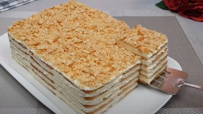 Po originalnom receptu u ovu tortu idu lisnate kore i tada ukus podseća na krempite, međutim, u receptu koji sledi korišćen je keks kao podloga. Napoleonova torta se priprema bez pečenja, jednostavno i brzo, a ukus joj je jednostavno neverovatan.