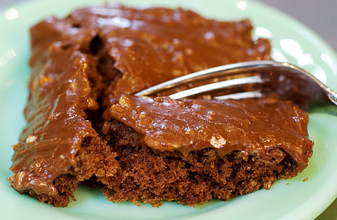 U posudu za mućenje sipajte šećer, brašno i so. U posudi na šporetu sipajte maslac i ostavite da se otopi, zatim dodajte kakao, sipajte kipuću vodu i ostavite da prokuva 30 sekundi, mešavinu sipajte u brašno i ostavite da se prohladi.