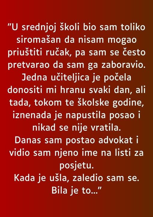 Kada je ušla, zaledio sam se. Bila je to ista žena koju sam znao, sa istim ljubaznim očima. Ali bio sam šokiran kada je počela da drhti i trese se. Prvo me nije prepoznala, ali kada sam joj rekao svoje ime, nasmiješila se.