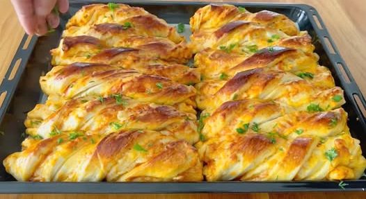 Uživajte u svojim ukusnim i jednostavnim štapićima od lisnatog testa sa sirom i šunkom!