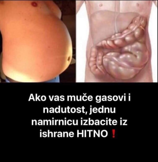 Nadimanje stomaka i gasovi nastaju obično poslije jela, usljed zadržavanja tečnosti. Obično nadutost proizvodi problem sa kretanjem mišića digestivnog sistema. Posebno je važno obratiti pažnju na nadutost gdje su gasovi učestali od nadutosti gde se zadržava tečnost. Kada su u fokusu gasovi obično je razlog tome ishrana koja se unosi i same namirnice. To su najčešće gazirana pića, masna hrana, vještački zaslađivači i boje, ali nadutost može biti izazvana vašom reakcijom, tačnije alergijom na određenu namirnicu.