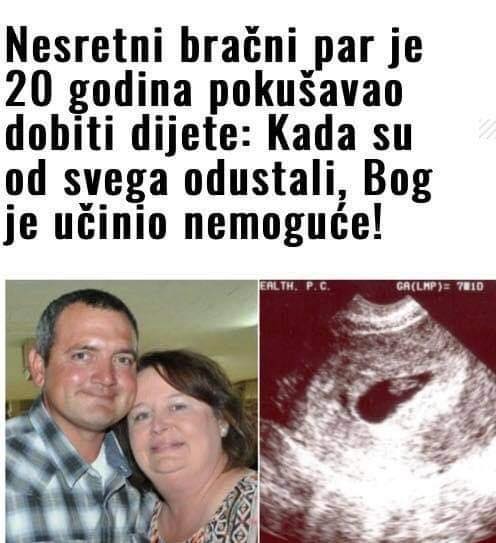 Nesretni bračni par je 20 godina pokušavao dobiti dijete: Kada su od svega odustali, Bog je učinio nemoguće!