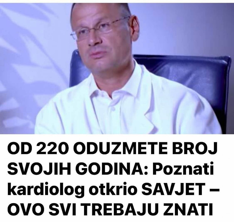 OD 220 ODUZMETE BROJ SVOJIH GODINA: Poznati kardiologotkrio SAVJET – OVO SVI TREBAJU ZNATI