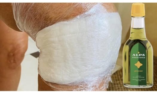 Trljamo bolna mjesta, ili nanosimo, na primjer, na koleno, stavljamo foliju i previjamo.