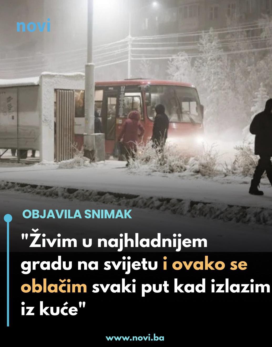 „Prije nego što izađem iz kuće, uvijek provjerim temperaturu. Danas je minus 48 stepeni. I da, za nas je to sasvim normalan zimski dan. Ljudi idu na posao, djeca u školu, život teče dalje. A ni ja danas ne ostajem kod kuće“, započela je Kiun, prenosi City Magazine.